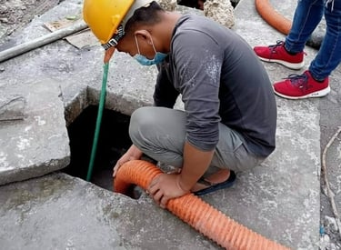 Our Lusong cleaning service removes hardened waste inside the septic tank manually for deep, complete sanitation.